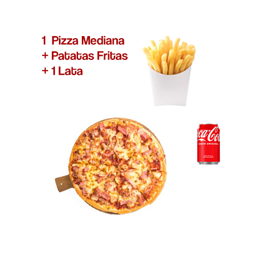 1 Pizza mediana + 1 Patatas + 1 Lata